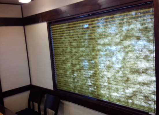 開口部には、和モダンテイストのブラインドを設置しました。外の光を和紙がやさしく遮っています。
