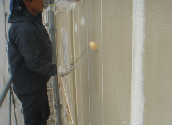 ①下地調整→②中塗り→③上塗り(微弾性フィラー改修システム)で進んでいきます。